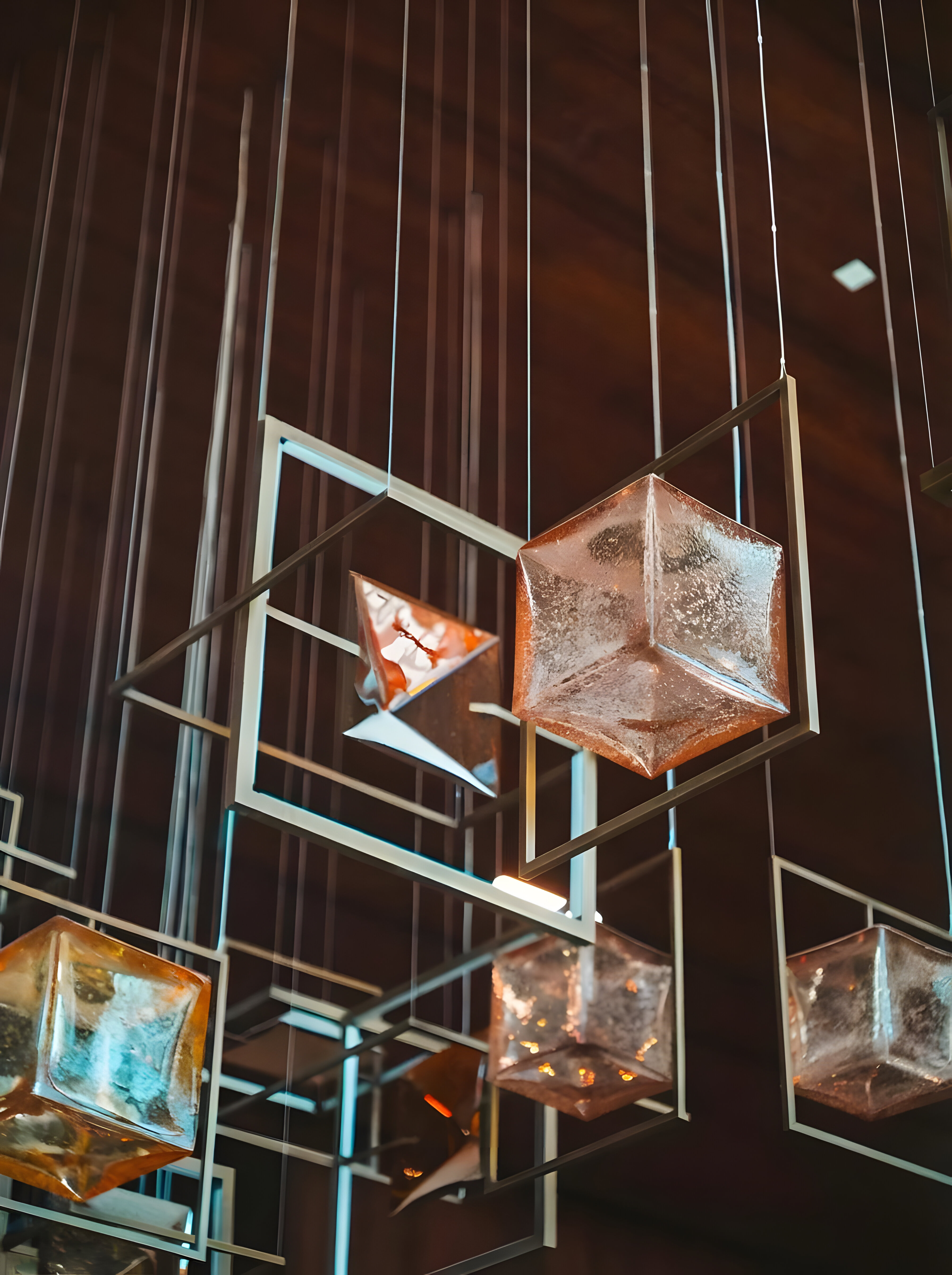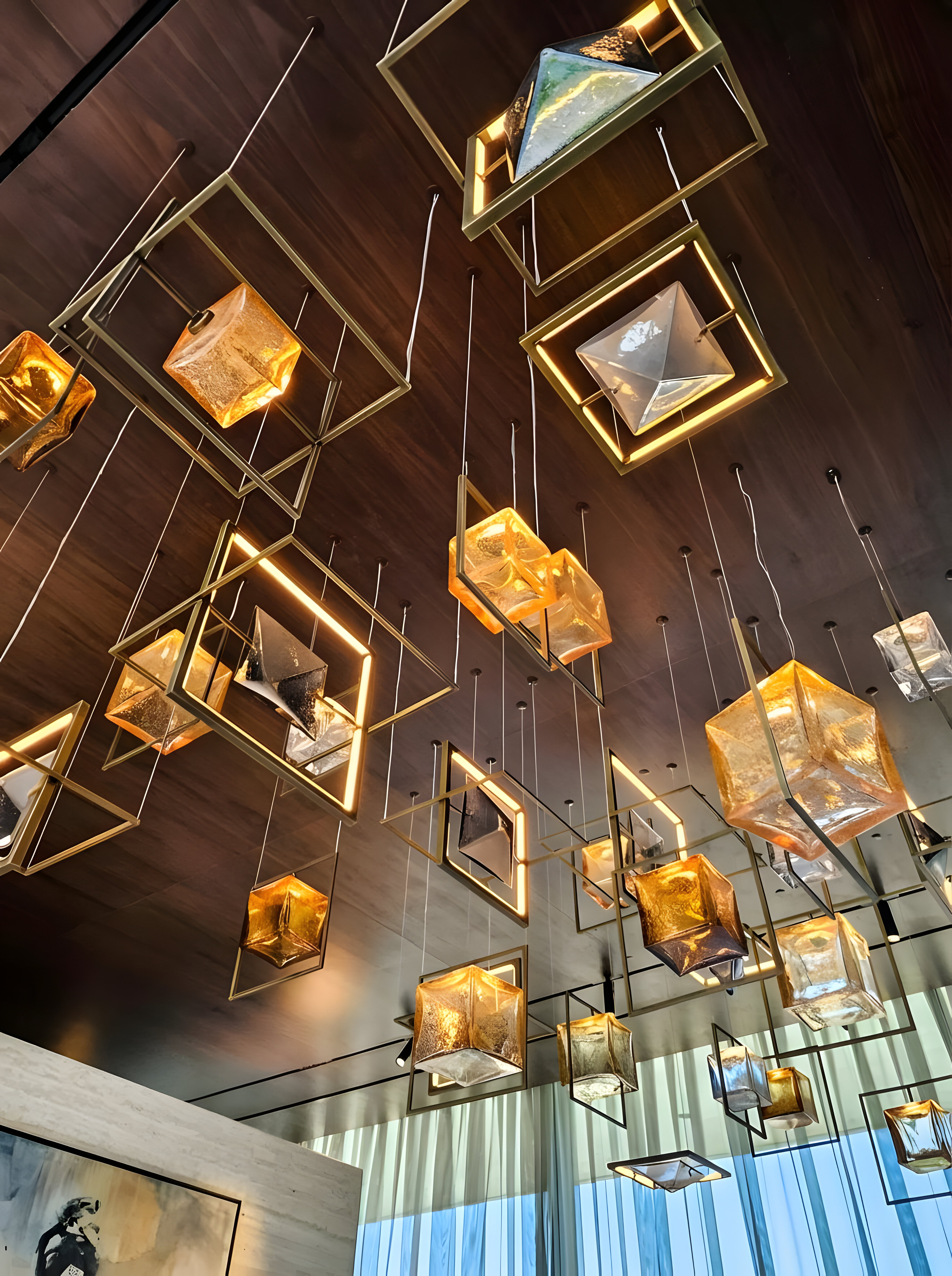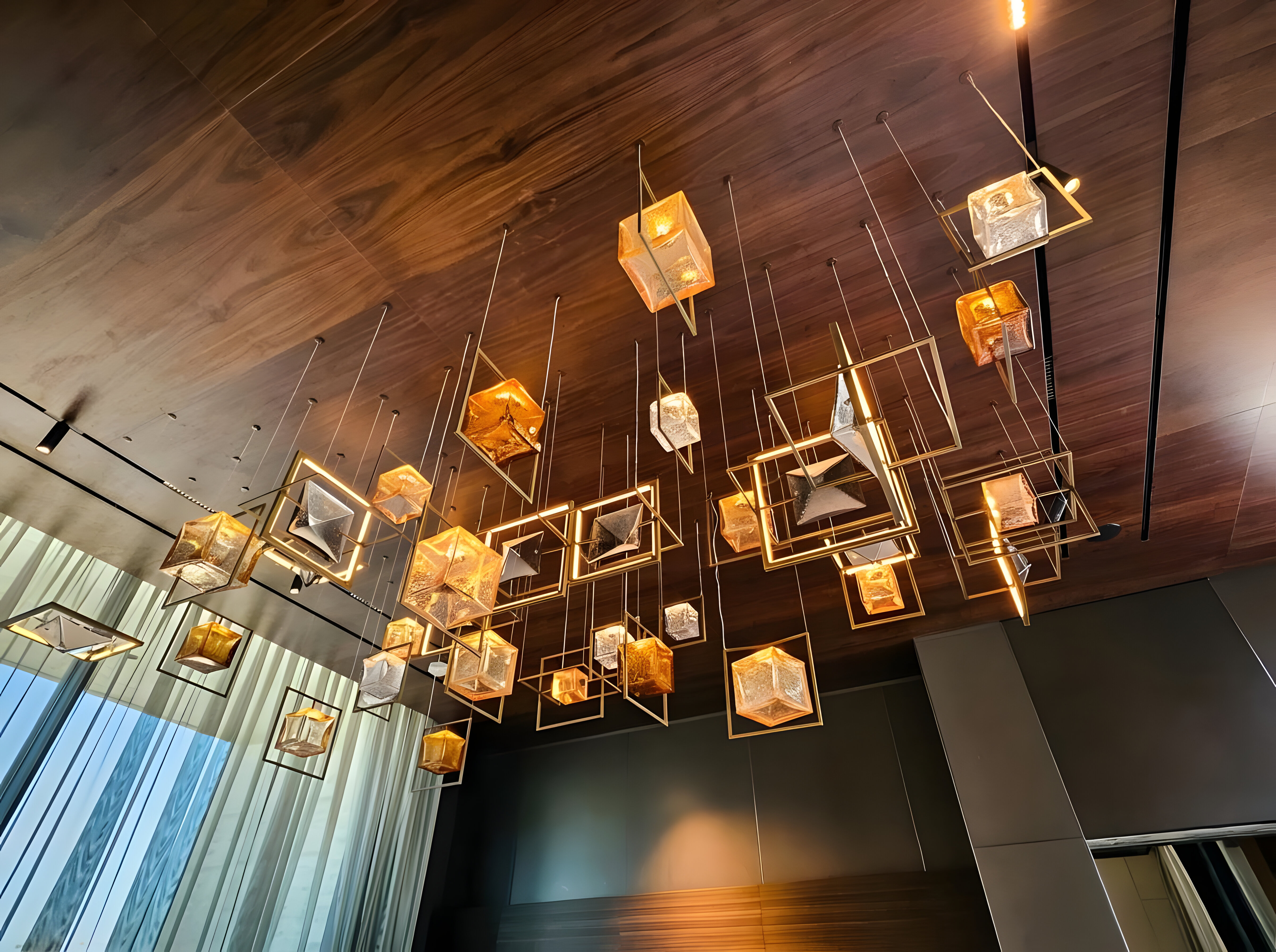 Developed through early dialogue with Mr. Emaad, the chandelier was created even before the space was built. Designed to complement the flow of light and reflection, it adds intimacy, softness, and a human scale to the architecture.